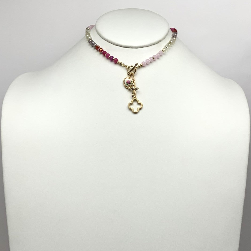 Crystal Beaded Heart Cross Charm Necklace