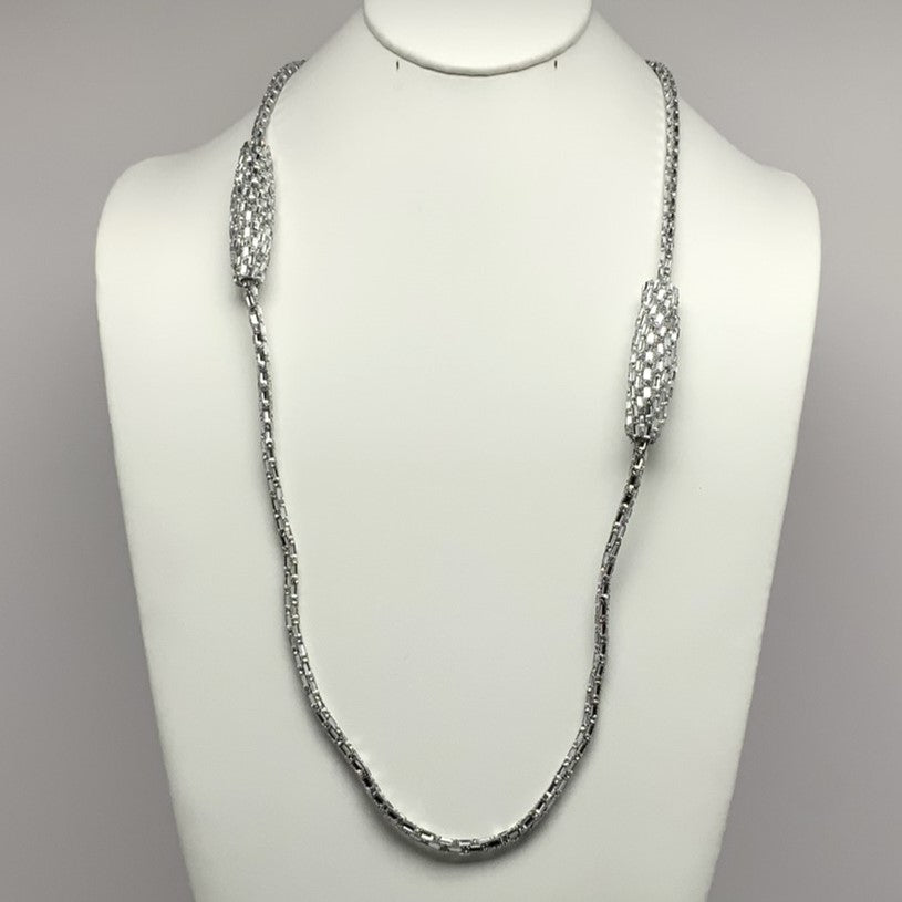 Long Single Strand Baguette Bling Necklace with Two Cylinders