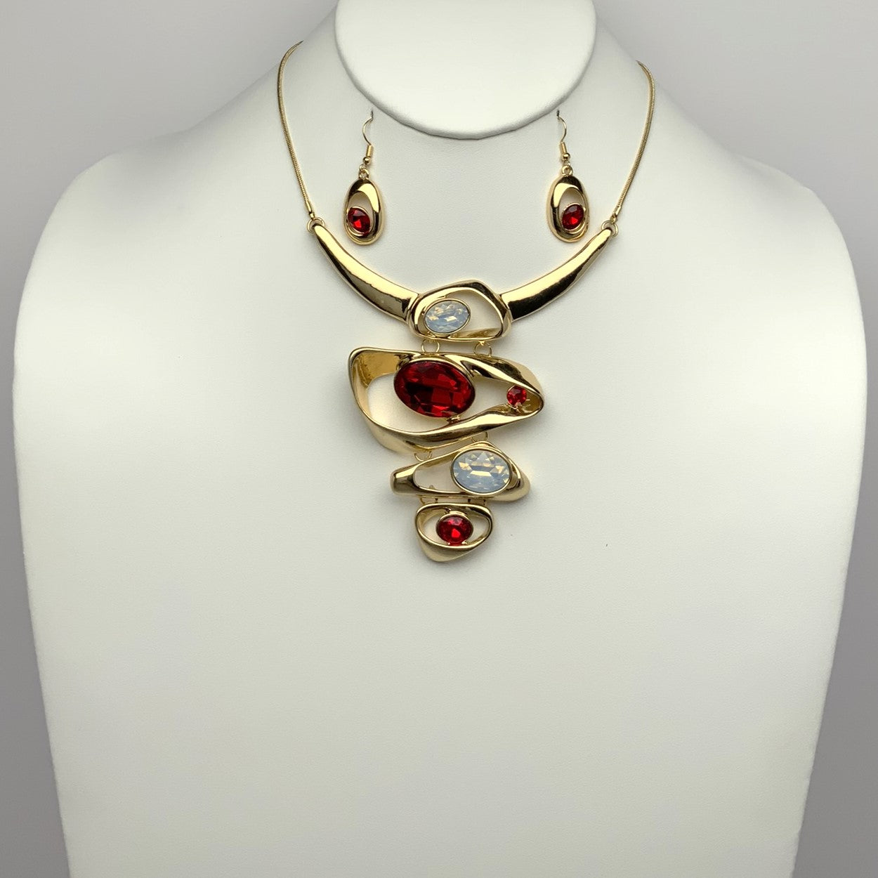 Metal and Rhinestone Drop Necklace