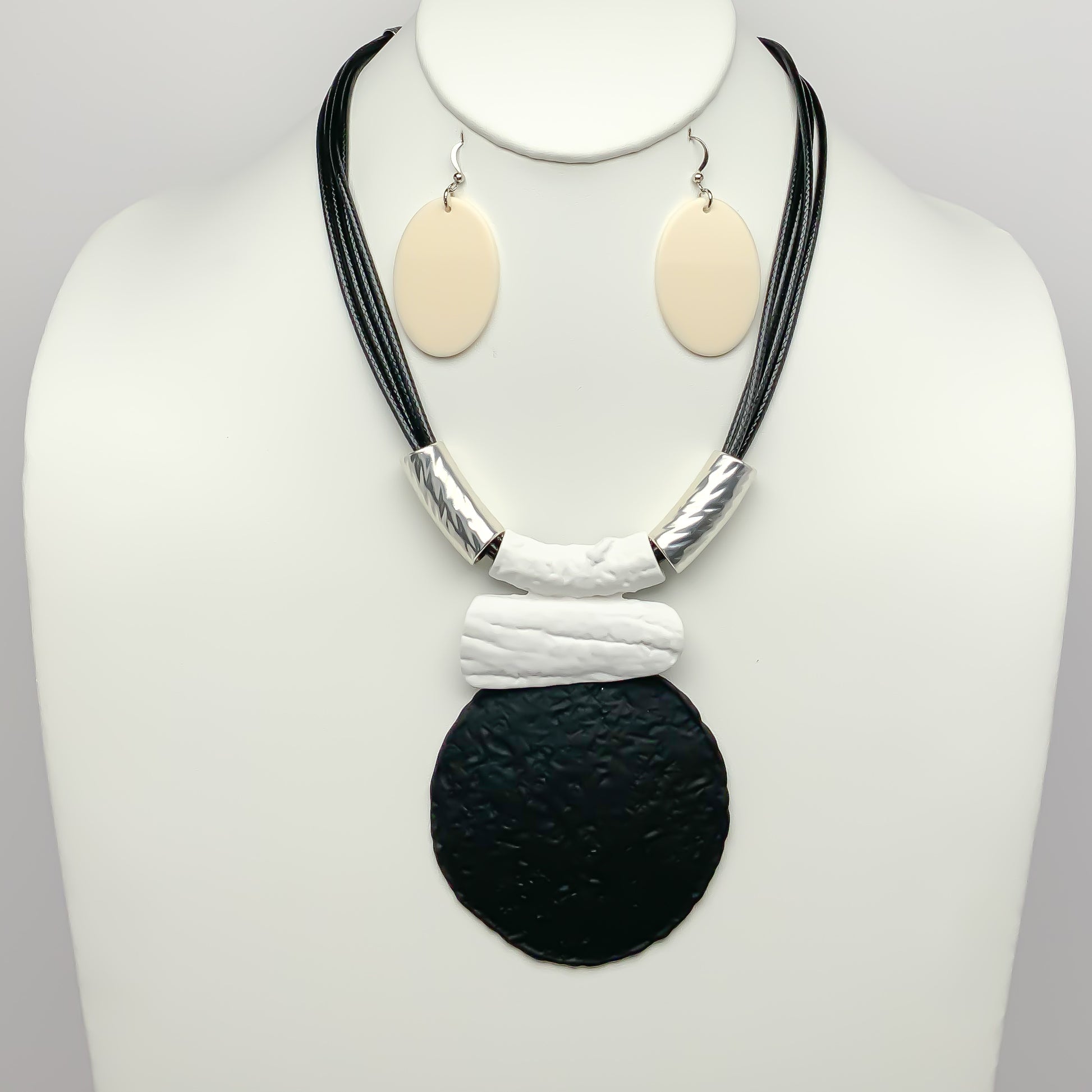 Enamel Coated Round Metal Disc Drop Necklace Set
